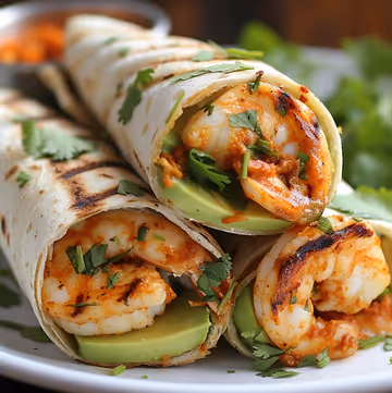 Adobo Shrimp, Poblano Rice, Beans, Guacamole, Red Pickled Cabbage, Cilantro, Crema, Salsa Negra.